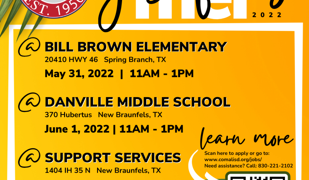 And the district is hosting five summer job fairs to fill all positions with a. The summer is prime time to join the team at Comal ISD and the district is hosting five summer job fairs to fill all positions with a high demand for teachers bus drivers instructional paraprofessionals licensed specialists in school psychology LSSP and licensed speech pathologists LSP. National Weather Service deems Deer Park StormReady.